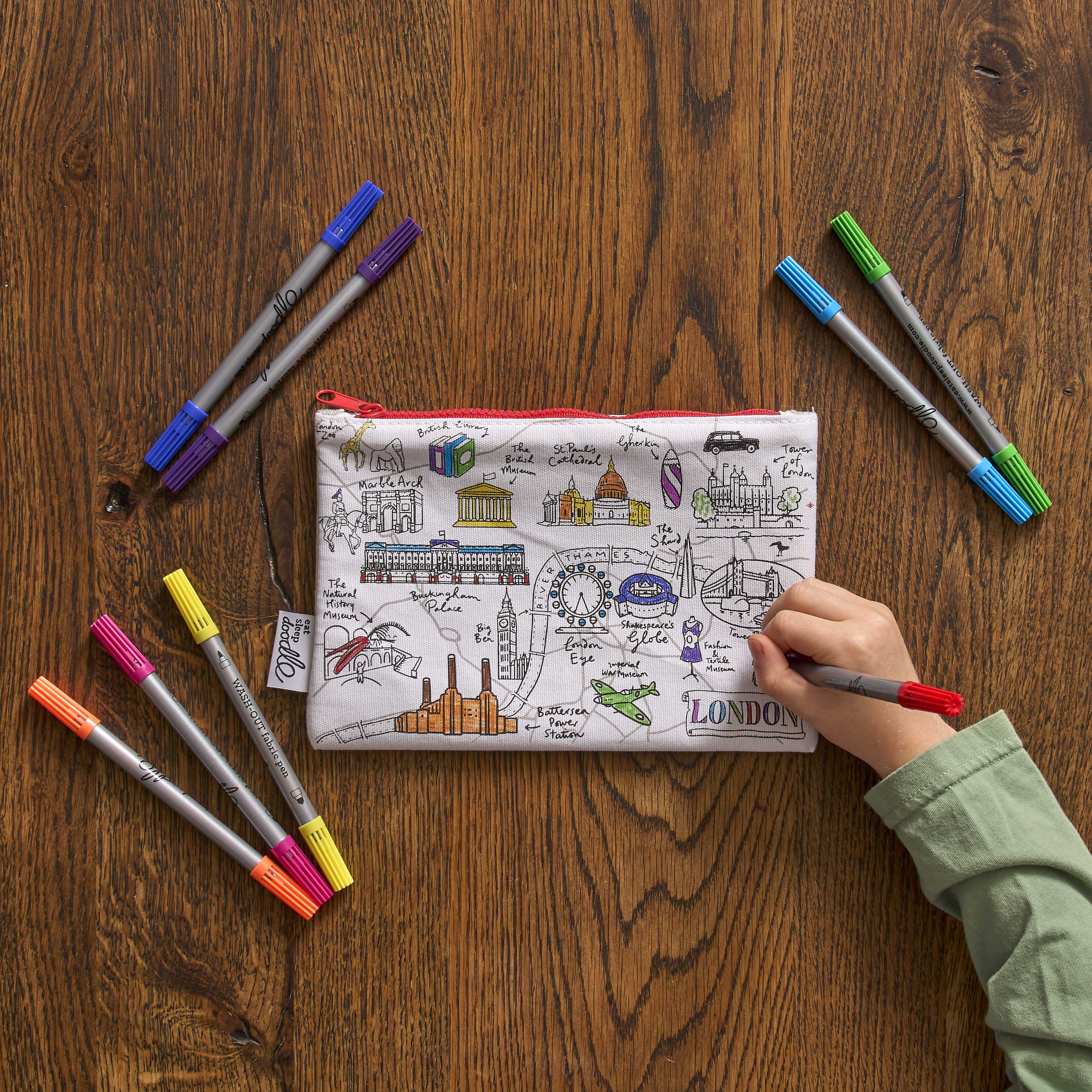 Nous aimons remplir nos feutres avec beaucoup d'encre pour que le plaisir de colorier dure longtemps. Cela signifie qu'en raison de la nature absorbante du coton et de la pression appliquée lors du coloriage, un certain débordement de couleur peut se produire en cas de coloriage intense ! En testant au bureau d'eatsleepdoodle, nous avons découvert que la meilleure astuce pour un coloriage parfait est de délimiter d'abord la zone avec la pointe fine, de laisser sécher quelques secondes, puis de remplir avec la pointe épaisse.